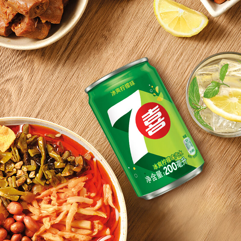 商品名称:百事可乐七喜7UP 冰爽柠檬味 碳酸饮料汽水可乐 200ml*20听 迷你罐整箱装