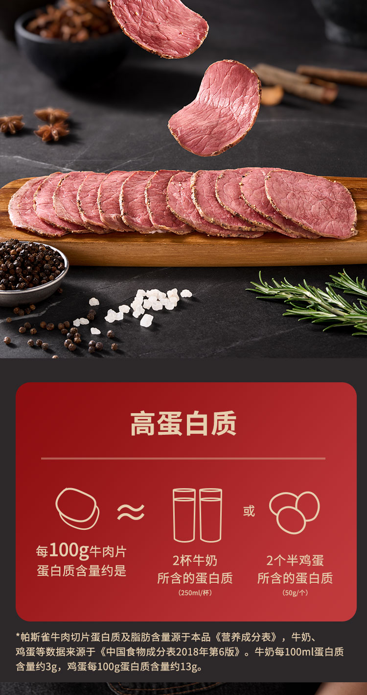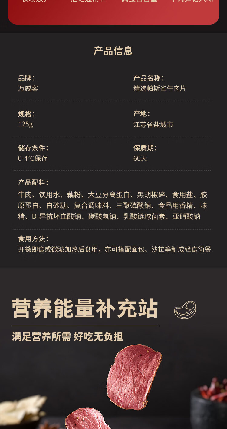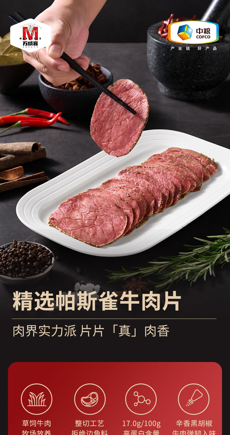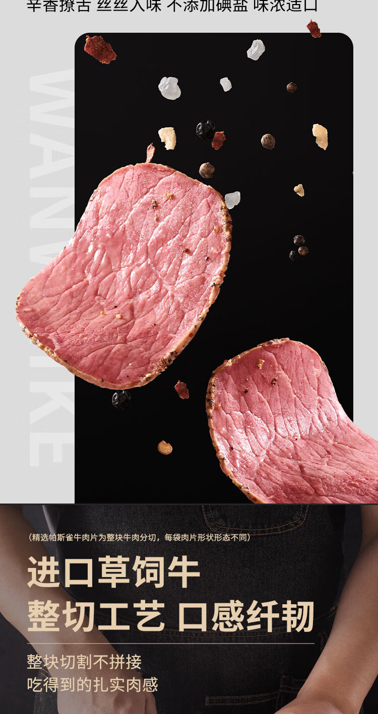 商品名称:万威客 帕斯雀牛肉片(黑椒)125g 整切草饲牛肉火腿片午餐肉零食早餐熟食