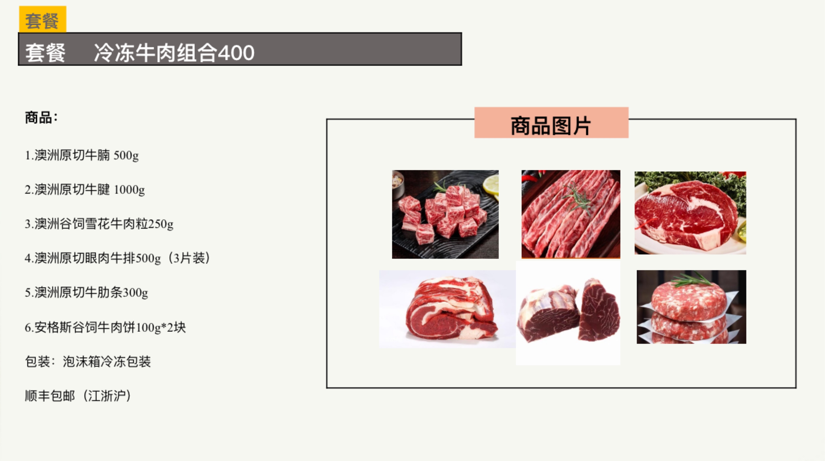 商品名称:冷冻牛肉组合