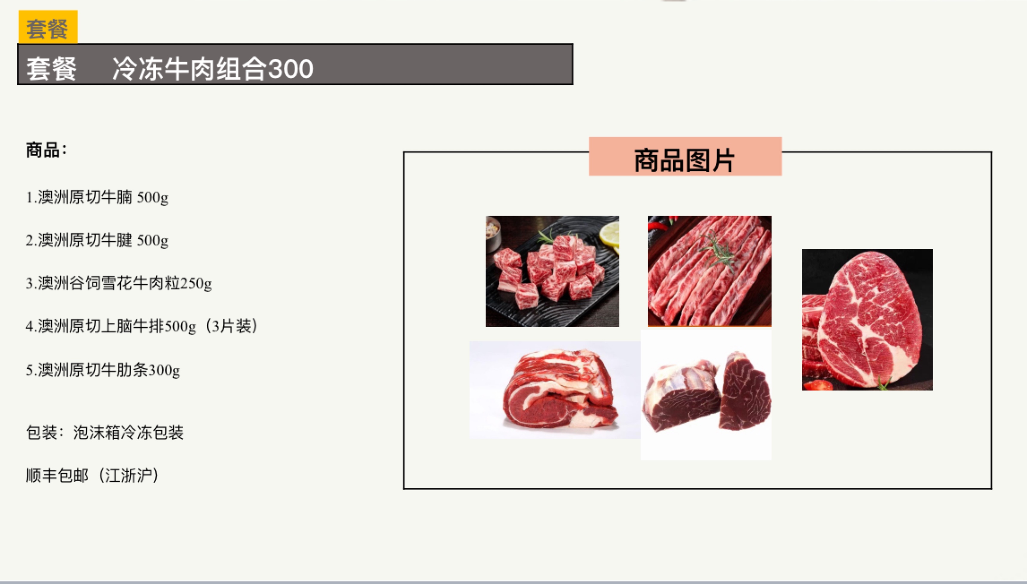 商品名称:冷冻牛肉组合